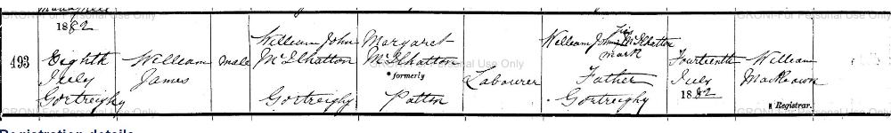 William James MCILHATTON, 1882, age 0