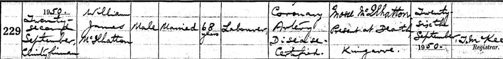 - William MCILHATTON's siblings: Alexander MCILHATTON (1884-1961), Fanny MCILHATTON (1886-1889), Margaret MCILHATTON (1888-1888), Elizabeth MCILHATTON (1890-1891), Robert John MCILHATTON (1892-1916) and Moore MCILHATTON (1895-1960)