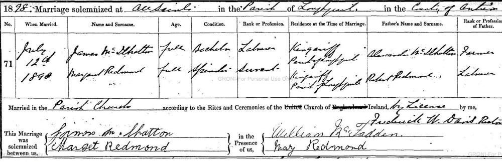 - William MCILHATTON's other families: with Margaret REDMOND (1877- ) and Mary PATTON (1881-1924)