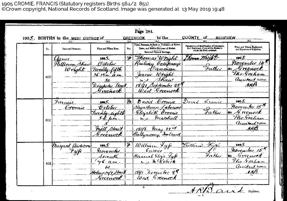 Francis CROMIE (1905- )
