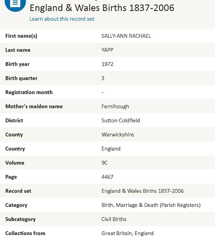 Family of John E YAPP and Janet E E FERNIHOUGH