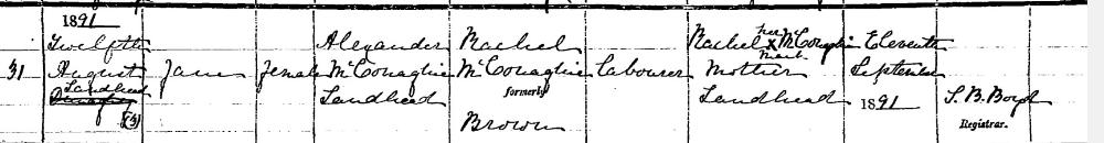 Jane MCCONAGHIE, 1891, age 0