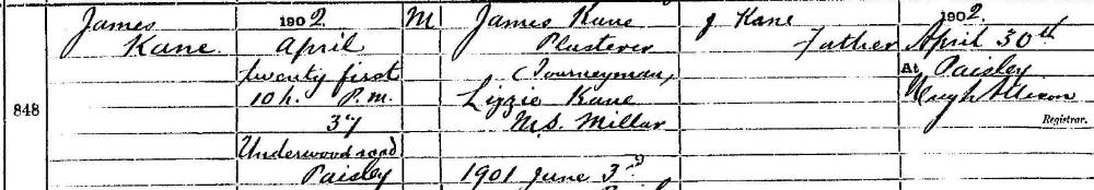 James KANE, 1902, age 0